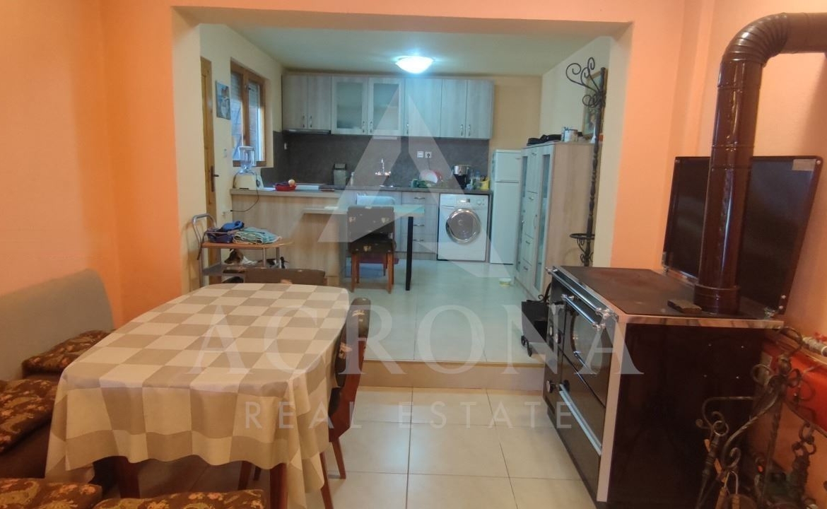 Разпределение - Къщата е на два жилищни етажа - първия етаж се състои от просторна кухня с всекидневна и излаз към двора. На вторият има две големи спални, коридор и баня и тоалетна.